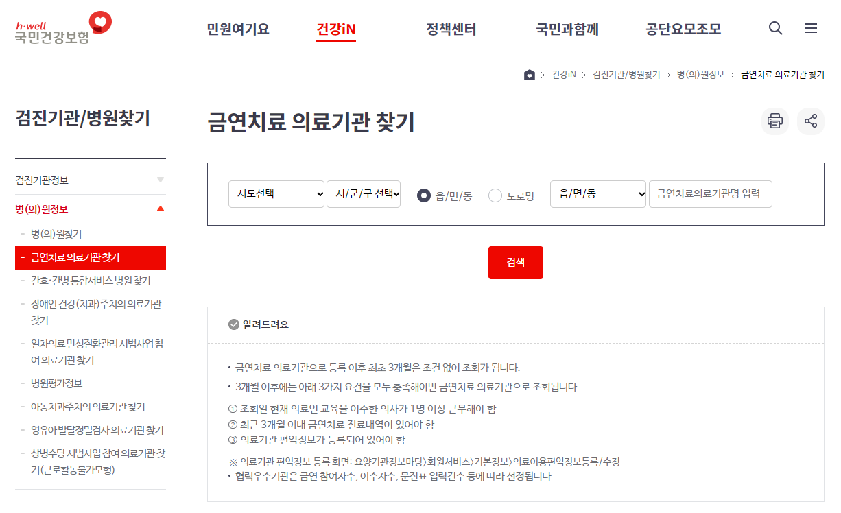 금연치료 의료기관 찾기