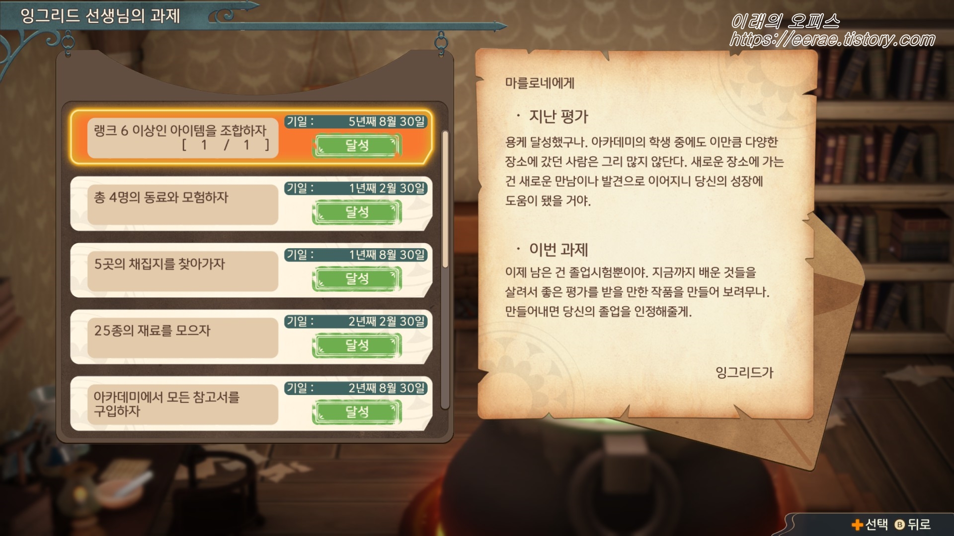 원작을 했던 건 좀 옛날이라, 원래 이랬었나? 한 포인트가 바로 잉그리드 선생님의 과제!